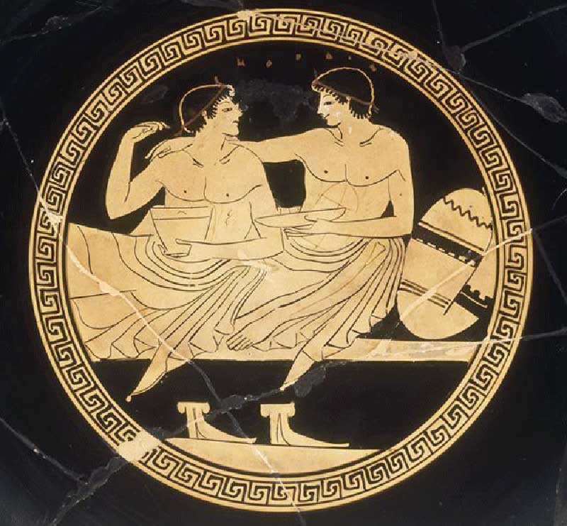 Dans Laqués, nous trouvons quatre personnages : Lysimaque et Melesias demandent l’avis de Nicias et Laqués, tous les quatre sont témoins de la démonstration d’un armurier, nous sommes dans le domaine d’une épreuve visuelle et directe et Nicias et Laqués sont compétents en la matière, ils ne sont pas de ceux qui dissimulent leurs jugements, la franchise est donc ce qui marque le développement du dialogue, plus précisément les soins que nous devrions avoir avec les enfants. Lysimaque et Melesias sont inquiets pour leurs enfants car elles estiment ne pas avoir fait rien d’importance dans leur vie et pensent que c’est parce que leurs parents ne se sont pas occupés d’eux car elles étaient très occupées par les affaires de la ville. Les jugements de Nicias et de Laqués sur les leçons de l’armurier sont contradictoires et, face à cette impasse l’avis de Socrate est demandé. Avec son intervention, nous sommes passés d’un modèle politique de la discussion à un modèle technique, il ne s’agit pas de voter pour ceci ou pour cela, mais à une question technique à laquelle nous devons répondre par un raisonnement technique, nous cherchons une technique pour l’éducation de l’âme. Nous savons si une personne est compétente dans le domaine de la technologie, si nous savons qui ont été ses professeurs, s’ils ont été bons et s’ils ont pu former de bons élèves ; d’autre part, si elle a elle-même été capable de faire des travaux précieux.