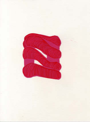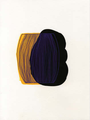 Sa peinture est portée par un double geste apparemment contradictoire, le geste de creuser l’infinité plate d’un fond monochrome jusqu’à faire apparaître l’envers de la couleur et un geste de recouvrement, d’étagement des lignes-formes par strates et reprises qui elles-mêmes cependant sont offertes au travail de l’évidement.