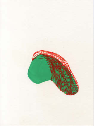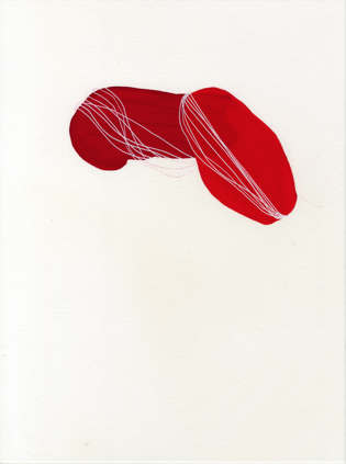 Premier dans l’ordre du déploiement, le geste de jeter ou de poser dans une partie en général non centrale de la feuille de papier, une forme souvent noire, parfois d’un bleu intense, d’un vert tendre et acide ou d’un rouge terre.