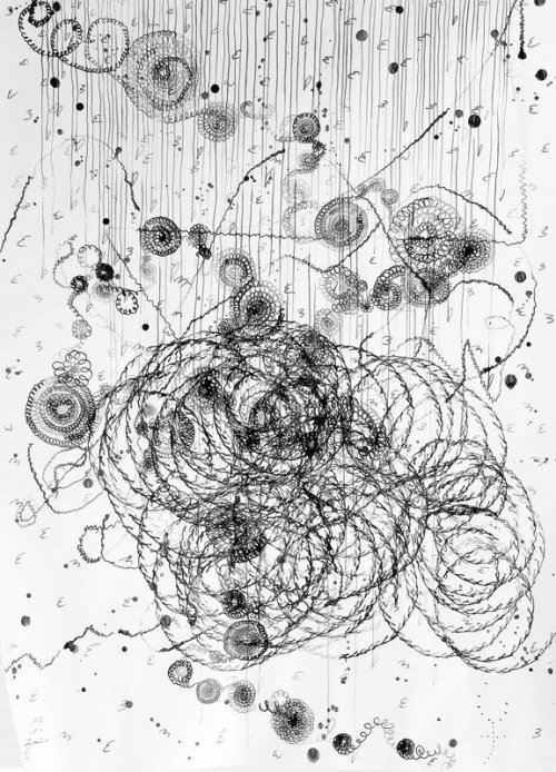 Sono le ‘riflessioni’ originarie di un ‘pensiero visibile’ che vive nei riflessi obliqui dell’impersonale. È una ‘scrittura visiva’ che, immersa/emersa nella liquidità della materia-inchiostro, incisa nella diramazione o successioni delle linee ‘topo-grafiche’, dei flussi che curvano lo spazio che formano visioni labirintiche della scrittura, anche quando sembrano comporsi in ordinata testualità. Una interferenza tra texture e diagrammi geometrici nelle cui pieghe s’insinuano arabeschi estatici, cifrari d’enigmi orientali, erranti ana-grammi della memoria. Una pulsione memoriale che non ha cose né luogo ma ‘solo’ il gesto che ‘inizialmente’ la muove. Un gesto che è radice proliferante – in nome : Rhizoma !– delle espansioni atemporali della scrittura desiderante che rivoluziona la Storia nel ‘controverso’ del suo silenzio..