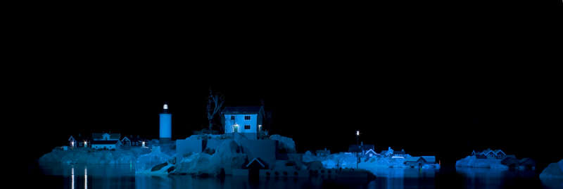 C’est que, comme c’est souvent le cas dans les œuvres photographiques trouvant leur place dans le champ de l’art contemporain, ce qu’il cherche à appréhender se trouve moins dans le présent que dans les formes irréductibles du passé. La série encore en cours aujourd’hui, intitulée Archipelago, met en scène à l’échelle 1/40 des maisons de pêcheurs dans des îles d’un archipel fictif typique de la Baltique. Nous voyons donc non seulement des maquettes mais des stéréotypes, ou plus exactement des mises en scènes en modèle réduit d’éléments issus de la mémoire collective et peu ou plus accessibles aujourd’hui parce que n’existant plus ou n’étant plus habités réellement.
