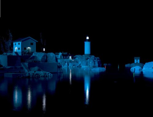 Dans le premier cas, il en appelle en nous à l’enfance, aux mondes construits des trains électriques, circuits automobiles ou autres mais en le décalant de telle manière que c’est l’adulte qui regarde son enfance en regardant la maquette, et dans le second cas, les images rappellent en nous la forme même du souvenir, rêve nimbé d’éternité émergeant dans le bleu nuit tremblant annonciateur de fin du monde.
