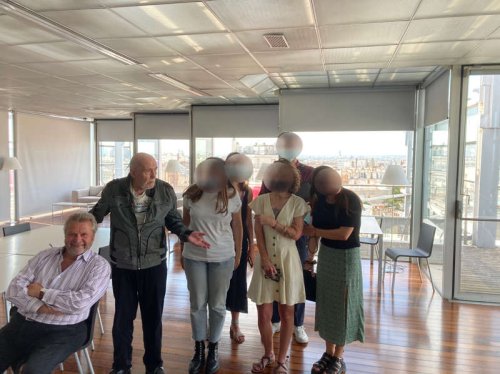 Si vous pouvez constater sur la photo que les visages sont floutés, c’est simplement par respect de la net-éthique, Fred Forest n’ayant pas eu le temps matériel de courir derrière les uns et les autres des protagonistes pour avoir leur consentement. En effet, ils ont tous filé à l’anglaise dès la séance Instagram terminée pour rejoindre leur poste respectif de travail afin de préparer la grande exposition de Damien Hirst qui sera très certainement l’événement Parisien de l’année.