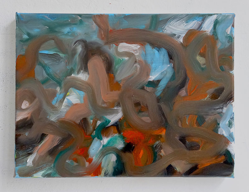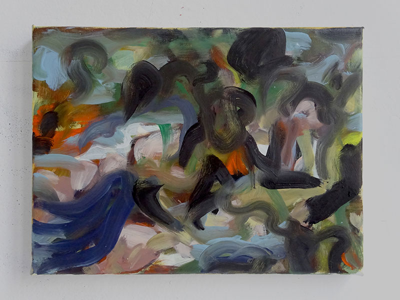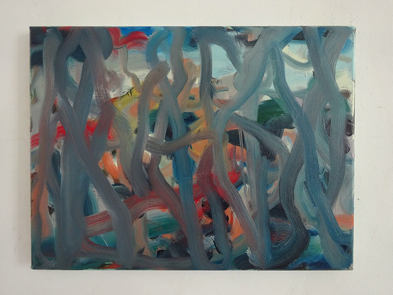 Formellement, on pourrait penser que ses peintures et ses dessins sont réalisés par deux artistes différents, tant la matière anarchique et parfois saturée de la peinture à l’huile semble s’opposer à la sobriété du feutre sur papier. Or ces deux pratiques participent bien d’un même chemin, libérer son propre regard et celui du spectateur des automatismes de la figuration.