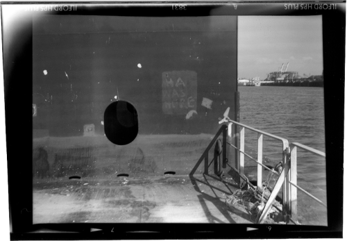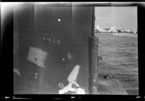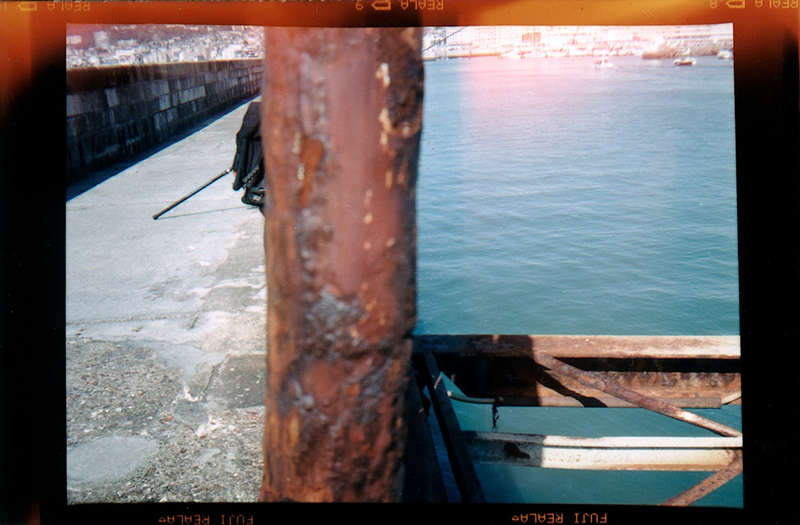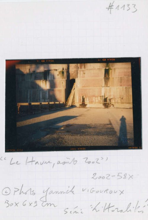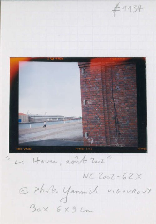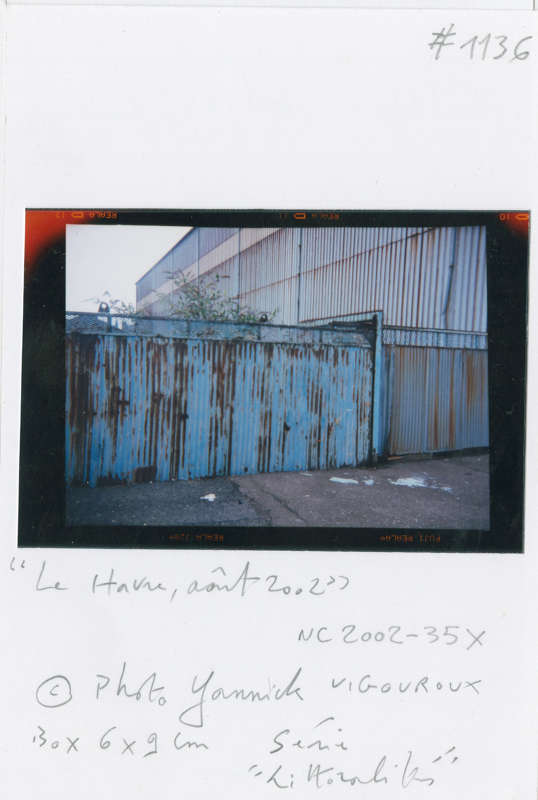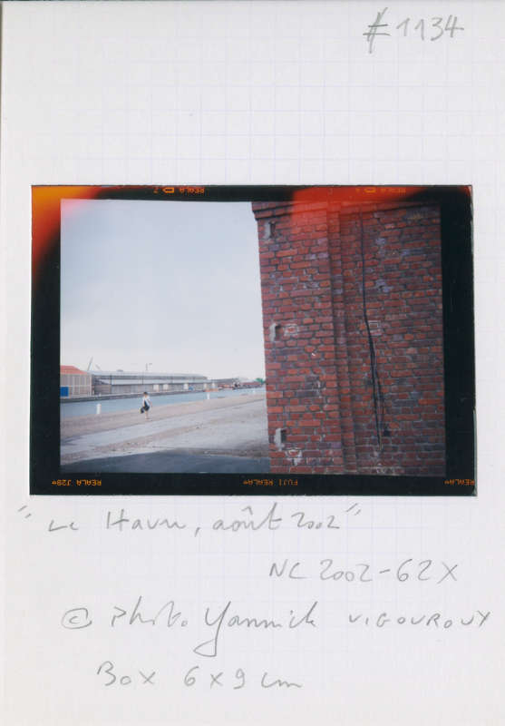 Il nous invite à dépasser l’inévitable ambiguïté qu’une telle production d’images suppose entre la part documentaire et la part esthétique. Il refuse tous les artifices de la pratique photographique. Fidèle utilisateur d’appareils rudimentaires « Box », « Polaroïd » ou comme pour cette série havraise une « Scoutbox Lumière », Yannick Vigouroux a planté son camp du côté de la photographie en prise directe sans jamais trafiquer a posteriori le cadrage de ses prises de vues :
