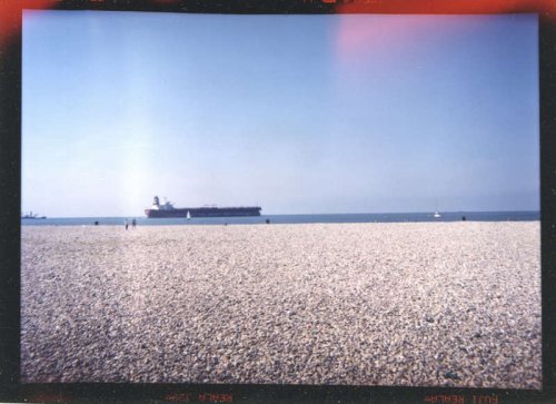 Les littoraux maritimes — zones de vacances et parfois de loisirs — ou les ports — zone de passages et de transits —, sont des lieux stéréotypés et impersonnels, plus souvent représentés par des images saturées d’une foule agitée, de voyageurs mouvementés. Ici, tout est étrangement, humainement vide, mais pas tout à fait. Piégé dans le paysage, on sent la présence fantomatique de l’homme.