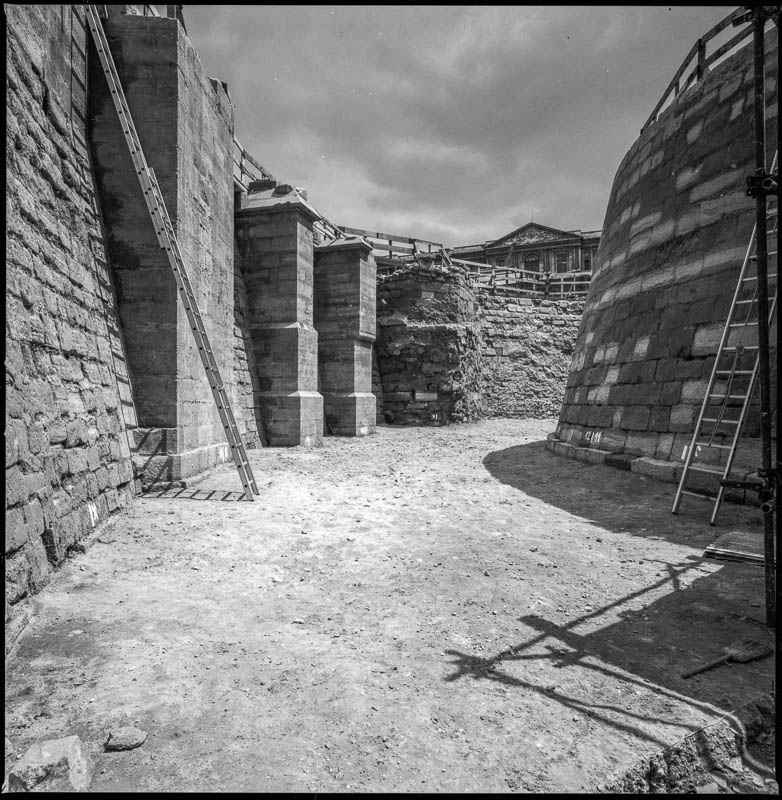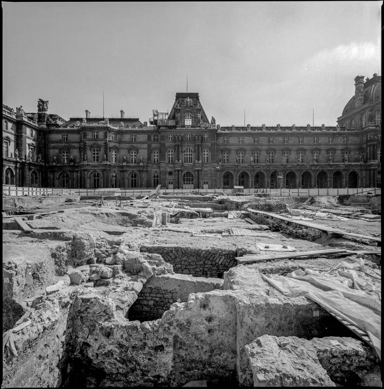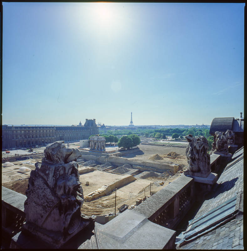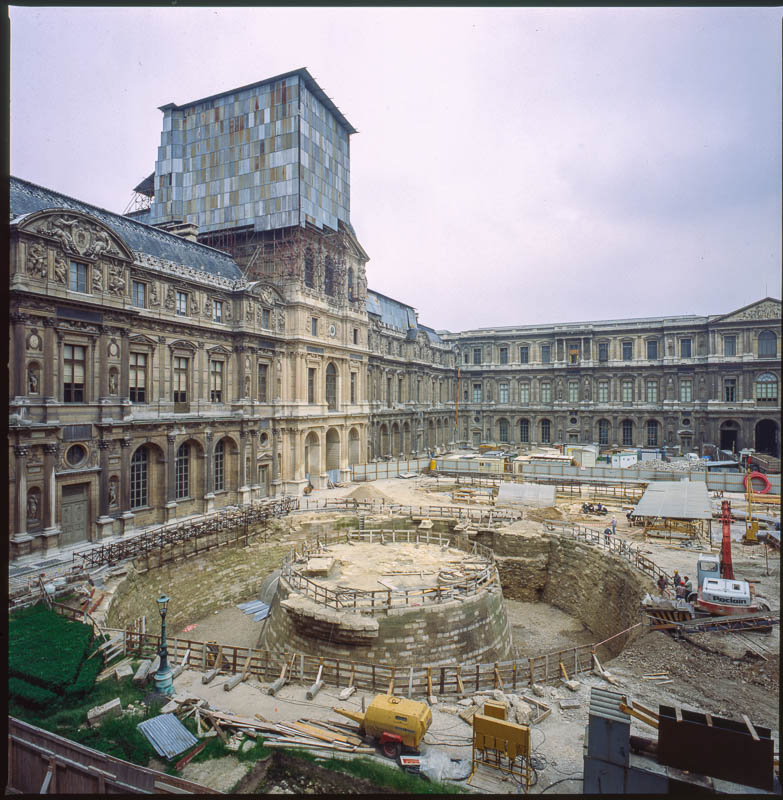Ici une pyramide émergeant des profondeurs de la terre. Là, les salons Napoléon III en chantier, révélant à nos yeux incrédules, non plus une proximité de hasard entre dehors et dedans, mais une similitude d’état, une parenté d’existence.