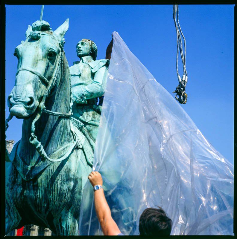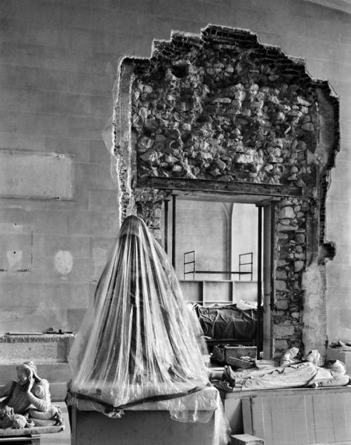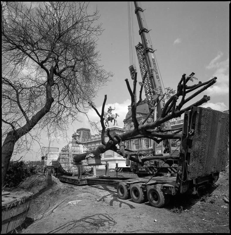 Ici, des arbres qu’on soulève et déplace comme on le fait des machines et des œuvres d’art. Là, méconnaissable sous son voile de plastique, La Vierge de Douleur de Germain Pilon, qui attend et attend encore, que sur ses genoux vienne s’appesantir un corps dont l’absence suggère qu’il est plus présent encore que s’il était là. Présent en image, présent mais invisible, présent dans l’esprit qui loge au dedans d’un corps et pense ce qui au-delà de lui l’enveloppe et le concerne.