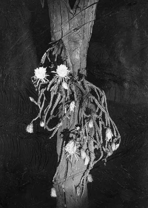 Soulevée par la photographe Sylvie Bonnot dans un corps à corps, cristallisée, déposée sur une feuille blanche ou un mur dont elle épouse, comme une écorce, l’architecture et les rugosités, la surface sensible noir et blanc frissonne, en devenir de la mémoire de ce qui a été regardé et partagé ; dans la profondeur des noirs et des blancs, elle se fronce en peau délicate du voir. Le silence argentique retient dans ses plis les sons de la forêt, martèlement sourd de la pluie sur le Maroni, zonzonnement aigu des moustiques, cri rauque du singe hurleur, hululement et sifflement de la chouette mouchetée…, peut-être quelques passages furtifs dans l’épaisseur végétale. La gélatine vibre des rencontres et des attentes.