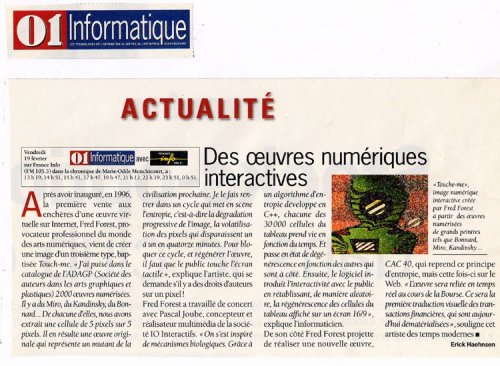 http://www.fredforest.org/touch-me/ (1998) « Touchez-moi pour me faire vivre » Milia Cannes