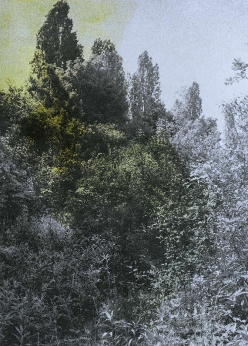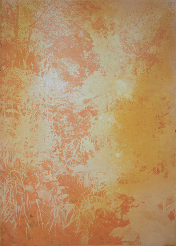 Image d’ouverture : Le bruissement entre les murs, impression jet d’encre pigmentaire sur Papier Arches BFK Rives+ dépôt de pigments de fleurs par martelage, Tirage nu 15x11 cm, 2023