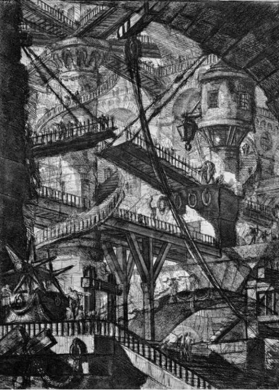 Le Requiem pour un jeune poète est une œuvre tout à fait singulière que l’on ne peut pas pousser dans toutes les oreilles comme un bout de coton hydrophile, et pour le coup c’est une composition d’une modernité incontestable en ce qu’il y a volonté de désaliénation de l’esthétisme canonique, et c’est aussi un fantastique système chaotique. Une œuvre-monstre ! Il faut dire que Zimmermann est un habitué du fait. Son opéra « Die soldaten », les soldats, est un monument colossal, peut-être le plus gros opéra d’après-guerre, avec « Le grand macabre » de György Ligeti. La composition musicale rejoint souvent l’architecture grandiose. Ainsi certaines œuvres sont de véritables cathédrales gothiques, les symphonies de Beethoven et de Mahler, les oratorios de la Passion de Bach, par exemple, et bien sûr le requiem de Mozart. Le requiem de Zimmermann aurait plutôt à voir avec les Prisons de Piranèse, tellement il foisonne en coins et recoins, en passerelles et en pont-levis jetés entre des colonnes-tours, en voutes et en escaliers enchevêtrés, dont certains sont des spirales se développant dans le vide, en piliers monumentaux et en arches écrasantes, en poulies et en cabestans hissant des cordes et des chaînes à des hauteurs vertigineuses, juxtaposition de volumes incroyables, superposition d’espaces improbables, lieux abominables de perdition et de strangulation. Les prisons de Piranèse sont des labyrinthes sans aucune issue.