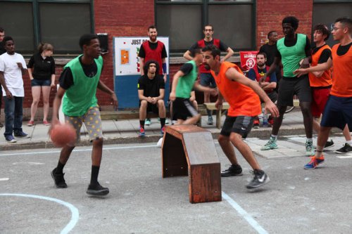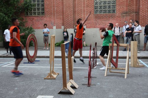 Basket ou handball le jeu est un prétexte et même un médium pour explorer et porter un point de vue critique sur un contexte : la relation entre les habitants et l’environnement dans lequel ils vivent est mise en perspective à travers les joueurs et les objets.