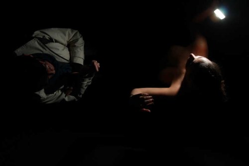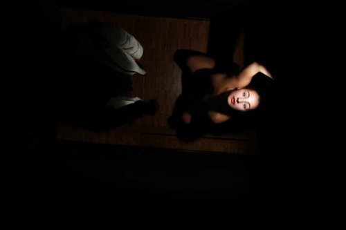 Parce que, malgré tout, il y a quelque chose à voir dans cette boîte noire. Et évidemment, Mélanie Peduzzi a bien compris qu’il était à la fois inévitable et drôle de jouer avec ce qui peut passer pour un cliché mais qui constitue en fait une trame profonde de notre psychisme, à savoir la nudité et avec elle l’ensemble des paramètres de ce que l’on pourrait appeler la scène originelle, celle du rapport sexuel dont chacun est issu. Car il n’y a qu’un pas entre la présence d’une femme nue dans une chambre noire qui se dévoile, se révèle dans l’instant d’un aveuglement. Oui, ici, nous avons affaire à une sorte de concentration maximale de l’ensemble des paramètres qui lient dans notre imaginaire l’inconnaissable avec le visible, l’aveuglement avec la révélation, le vrai avec l’insupportable et le beau avec l’insoutenable. Cette fois nous ne voyons pas par le trou de la serrure, nous avons fait un pas de plus mais, étant dans le noir, nous sommes à la fois les acteurs et les témoins de cette scène originelle dont nous nous approchons donc d’une manière inédite.