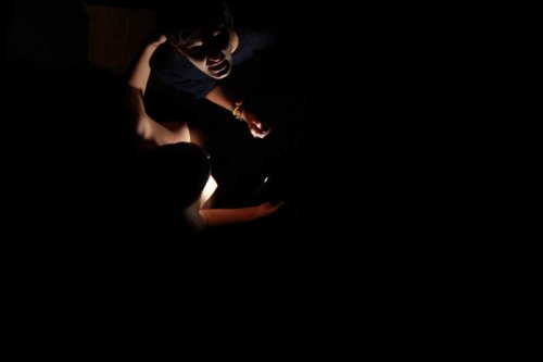 Oui, il faut en venir au fait : à l’intérieur de la boîte, la photographe est aussi le modèle et elle nous attend. Mais elle nous attend, puisque c’est d’une boîte noire qu’il s’agit, en tenue d’Eve, nue, dans le noir absolu. En fait, une fois que nous sommes entrés, elle nous aborde, nous parle, nous savons qu’il y a une ligne invisible à ne pas franchir, celle du contact physique direct. Mais parler est possible. Nous apprenons que le mode opératoire est le suivant : nous lui indiquons la pose que nous désirons qu’elle prenne et nous indiquons aussi l’orientation qu’elle doit donner au flash dont elle est dotée et qui se déclenchera au moment où, à notre demande, elle appuiera sur le déclencheur.