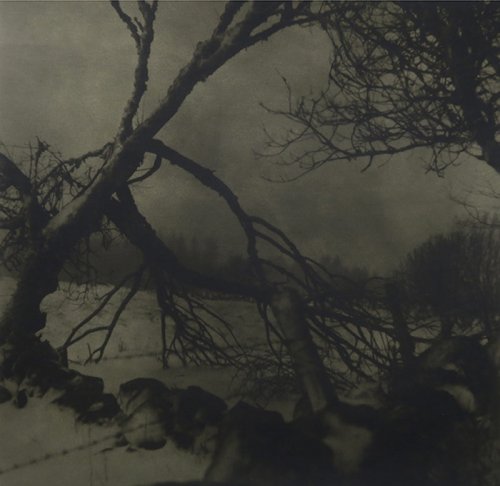 Ici, à l’Oeil Vert, nous avons affaire principalement à deux séries d’images, la première évoquant un jardin mais constitué de fleurs prises de près, l’autre un morceau d’enfance fabriqué à partir de paysages enneigés. À « l’absente de tout bouquet » répond ici l’absence de tout jardin et l’absence de tout Jura, région où elle passa des vacances pendant l’enfance et qu’elle évoque à travers des images faites en Aubrac, à cause de la neige.