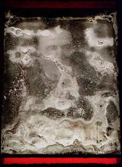 « Au départ c’est une déambulation dans Paris, cimetière Montparnasse. La découverte d’une tombe étrange, celle du général Hinstin (1831-1905), avec vitrail détérioré par le travail du temps, qui défigure le visage inscrit. […] Devant une telle image on ne sait qui regarde, qui est regardé : le miroir (se) dissout. Et c’est cet endroit, cet entre-deux vibratoire en chacun comme en tous, qui signe la marque d’Instin [14]. »