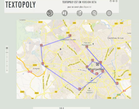 Le Textopoly est un support idéal pour l’aspect collectif et ouvert du projet Instin. Quiconque peut y participer et devenir à la fois auteur et éditeur en s’inscrivant sur le site. Les auteurs investissent une partie de la carte virtuelle et peuvent y écrire simultanément, coloniser un domaine de la carte, voire vandaliser l’espace d’autrui en effaçant son texte. Les lecteurs, de leur côté, grâce à la possibilité de créer des chemins de lecture entre les cases deviennent également des acteurs dans le processus de création textuelle. L’écriture numérique donne un nouveau sens à la notion de texte fantôme puisque le lecteur doit aller chercher et faire apparaître lui-même des fragments de textes localisés sur une carte géante, pour composer son propre texte. Le dispositif d’écriture numérique repose donc sur une spatialisation des possibles textuels activables ou non par un lecteur itinérant. Le texte peut apparaître et disparaître au gré de l’évolution du projet et des actions de ses participants. La carte du Textopoly étant virtuellement infinie, certains textes pourront s’y perdre rester à jamais dans l’oubli.