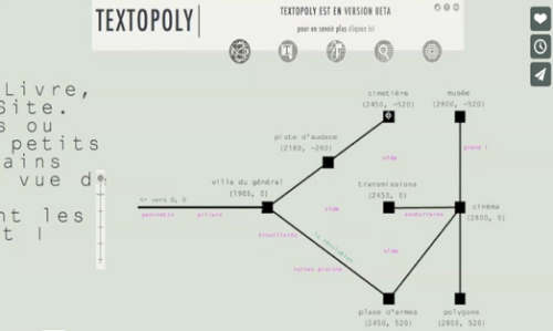 [3] Sur le site de création littéraire Remue.net et sur la plate-forme d’écriture interactive Textopoly.org.