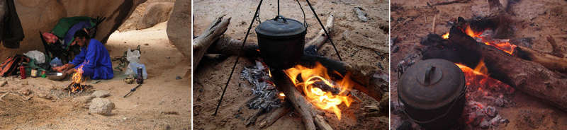 Ce fut l’occasion de bivouaquer au milieu de nulle part et de goûter à la délicieuse galette de farine cuite au feu de bois par notre si gentil guide touareg.