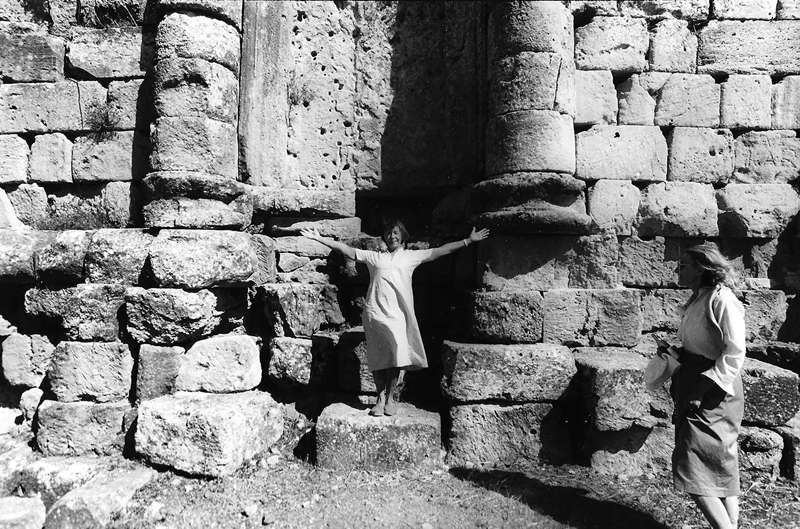 Qui voit-on ? Le fantôme de la Reine fondatrice du site, Cléopâtre Séléné, épouse de Juba II ? Non, ma belle-mère, amoureuse des vieilles pierres érodées qui nous invite dans un large geste d’accueil à prendre possession de ce lieu.