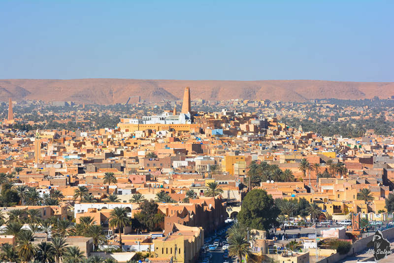 Nous poursuivons notre vol toujours full West pour finalement survoler l’oasis de Timimoun surnommé L’oasis rouge, capitale de la région du Gourara, célèbre pour l’architecture de la ville tout en rouge-sang et son festival de musique.