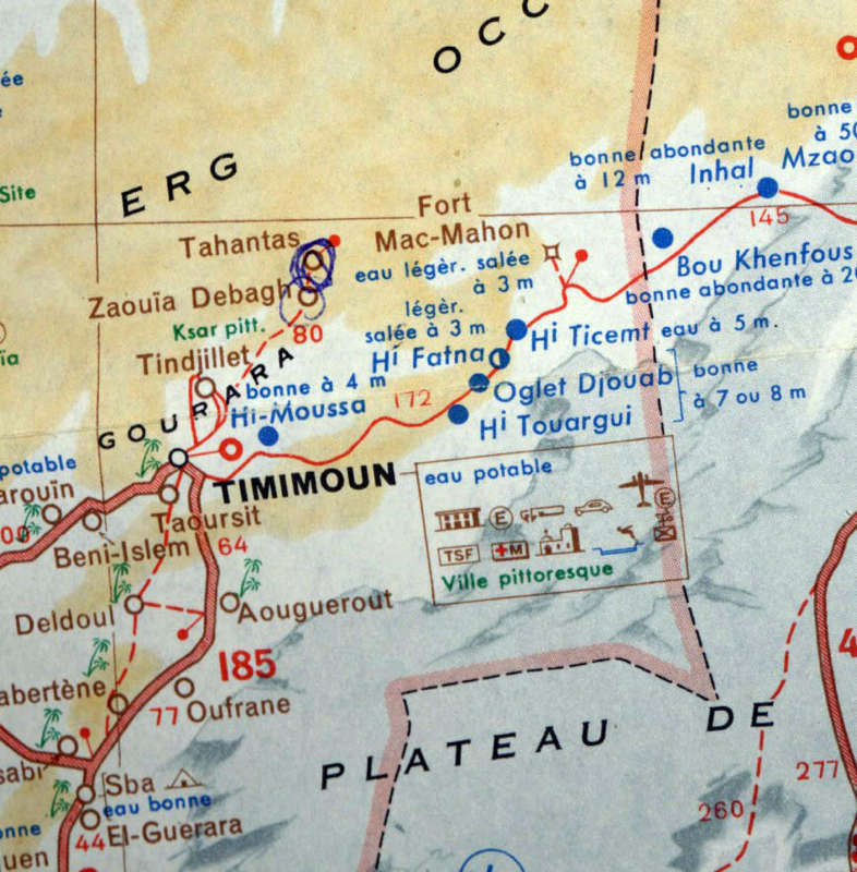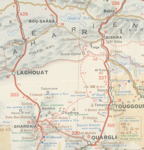 À partir de Bou-Saada, le Ville-Evrard pique plein sud-est South East bound, en direction de l’oasis de Djanet, 1900 kilomètres à parcourir.
