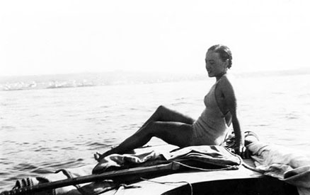 Et ma belle-mère Denise T. (dans une photographie prise vers 1932 sans doute) sur son voilier, certes petit (22 pieds) mais remarquablement sportif, le fameux Star gréé en Sloop, qui venait juste d’être introduit en France, (et par conséquence en Algérie), évoluant avec adresse dans la baie d’Alger au milieu de navires de toutes sortes, marchands et militaires.