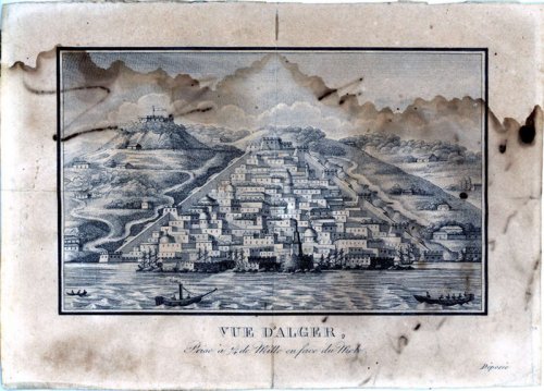 Puis voici Alger que je présente dans une belle gravure ancienne datant sans doute du début de la colonisation qui nous montre la seule Casbah entourée de ses remparts d’époque (avant 1830).