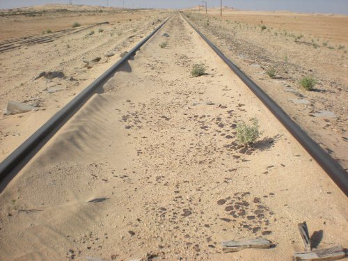 Peu de flashes dans la partie du vol entre Ouargla et Ghardaïa, si ce n’est que, curieusement, surgit de nulle part une voie de chemin de fer enfouie dans les sables.