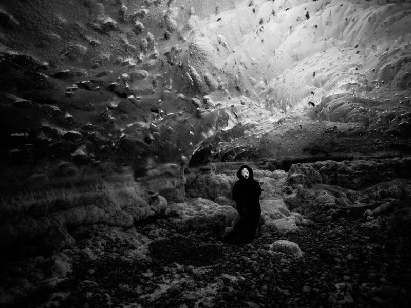 Les traces envahissent ces images anodines comme pour dire qu’elles ont toujours été là, qu’elles sont la palpitation des profondeurs sous l’habituel, sous le langage. Les photographies sont ensuite numérisées : « Mémoire de l’oubli » n’est pas seulement la mémoire de l’inconscient, mais aussi de l’argentique, et c’est cette idée de passage qui est au centre de la démarche de Sandrine Elberg. Un autoportrait en Yuki-Onna accompagne cette série, fantôme de l’hiver, éternelle personnification errante de l’éphémère neige, comme une image funéraire de ce qui pénètre les images en les consumant.