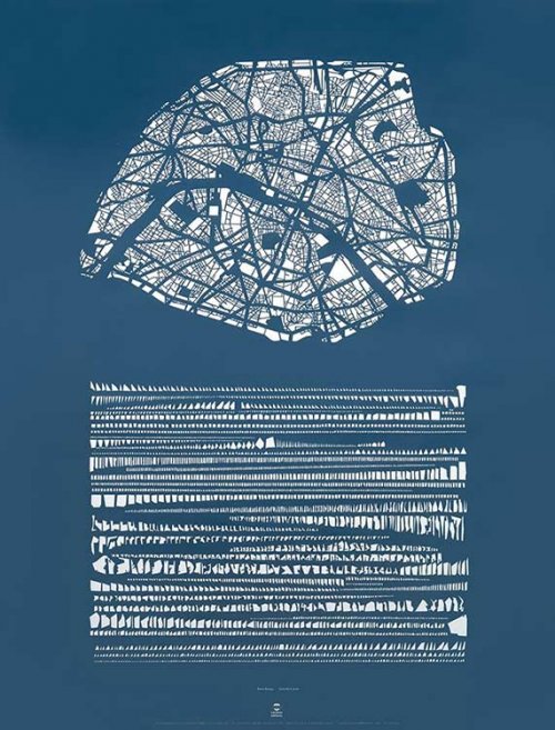 Armelle Caron joue avec les cartes, surtout celles des villes. En 2014, elle leur retire les mots et les couleurs. Elle garde les masses pour les ranger les unes en fonction des autres. Taille, format et circonférences pleines sont d’importance, rigueur et fantaisie de l’artiste aussi. Il y a Paris, il y a sa carte, et puis il y a « Paris rangé », comme un raccourci du bitume à la planche d’Armelle Caron. Les blocs de la ville de Paris se sont déployés sur plusieurs lignes à l’horizontale, les uns derrière les autres à une distance convenable pour que chacun se voie et se suive sans se toucher, sans se confondre. Paris est une file indienne, un tableau de formes, un étagement de quartiers. Au revoir la Seine, qui ne se dessinait qu’en creux de Paris, bonjour les entre-lignes, au revoir les rues et les impasses, Paris est partie se changer en feuille d’écriture, en code musical. Il y a des lignes pour les quartiers ténors et d’autres pour les picolos, il y a des segments de paragraphe pour les penchés et d’autres pour les tout-droit et les gros blocs-à-la-ligne. La sobriété annonce la poésie d’un jeu de géographe qui se plie à l’écriture… et ce coin de Barbès aux côtés d’un spécimen du XVIe ? Par ce rangement, chaque forme n’a peut-être pas perdu de sa charge référentielle mais en a dézingué son assise au réel. Ce bloc qui n’était qu’un référent, s’autonomise bien plus en ligne qu’avant, sur la carte striée de Paris. Entre Paris-tout-court et Paris-rangé, les blocs se sont déréférencés, une involution toute deleuzienne vers l’anorganique a eu lieu. « Paris rangé » est un nouvel organe avec un inédit code de lignes normées.