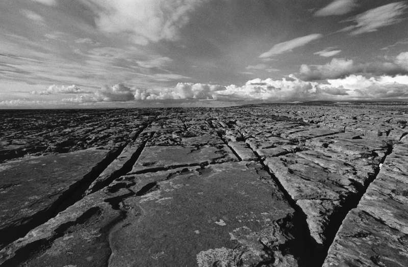 Le Burren, en Irlande, la fracture de la pierre et, plus loin, la mer, l’Atlantique nord, froid, violent, le vent sur le sel sur la roche, l’érosion palpable, visible, indécente.