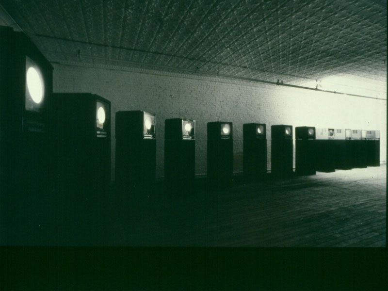 This image of the moon is actually a lit up surface. It is easy to see some barely metaphorical connection to a projection. The surface of the moon immerses us into some expectation of an image which would be projected over a kind of screen suspended in the infinite darkness of the sky, like in a huge cinema hall. For Paik, the Moon is thus the "oldest TV". The Moon has always been there, or nearly. However, we also know that Paik goes further in his refusal of the different features attached to the medium of TV - live broadcasting, recording, rerun, permanent flow of all kinds of images - since the so-called phases of the moon do not actually exist. The forms we take for moon crescents in his work have actually been obtained by placing magnets on the cathode-ray tube. The image of the moon is generated by our association process, our infering system. The image on the screen is clearly born from our imagination, even though it is based on a phenomenon linked to the medium of TV. Television then becomes the transcription into our world of an original shape which existed long before man could look at it as a natural phenomenon, an image, or as a NASA satellite.