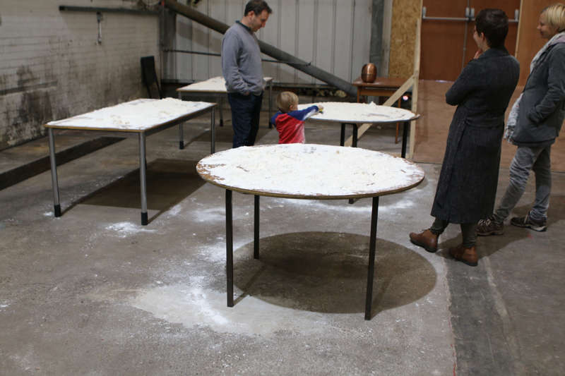 In Gains Brewery, artist Audry Cottin created a couple of round tables where you can create shapes and figures with dough, while a graphic artist records the process for posting online. According to Ms. Cottin, her work is a therapeutic method inspired by the psychoanalyst Carl Jung. The meaning of her work resonates with the psyche through physical interactions. Mindfulness arises through touching. Things, whether physical or psychological, are constantly moving and changing.