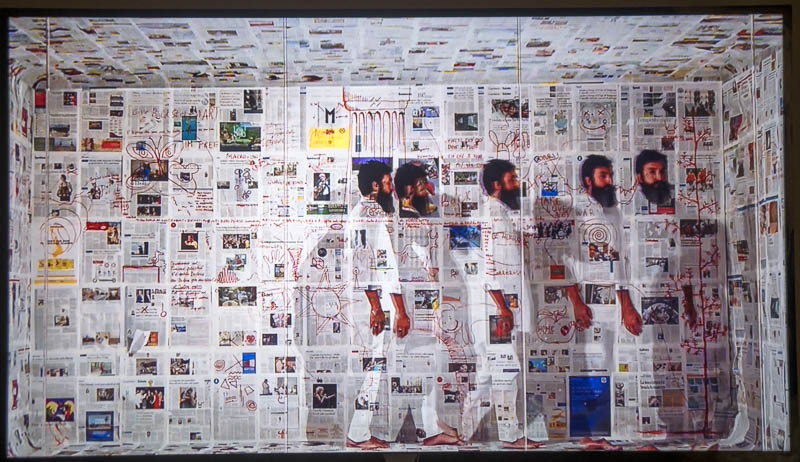 Il video di Michele Giangrande è un apologo sulle aporie della ‘civiltà’. Una dimora delle storie del presente diviene box di partecipazioni nei passaggi dei visitatori. Contaminazioni immaginative tra il corpo dell’artista e lo spazio che, come in uno shooting, in gesti tra ieratici e mimetici, sospesi in movimenti di risonanze animali, immettono lo sguardo in oscillazioni di senso, come un rituale di cortocircuiti memoriali.