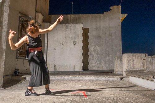 “Il corpo è per l’anima lo spazio natìo e la matrice di ogni spazio esistente” (Merlau Ponty). La video danza di Mena Rusciano testimonia la sorgenza corporea come iscrizione spaziale del gesto, nel suo formarsi e evocare se stesso come ‘prima radice’ della relazione con la terra, antecedente le forme nominali del linguaggio, arcaica ed ‘eterna’ conoscente espressione umana.