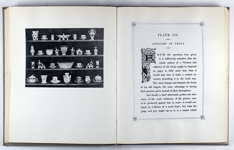 « Un exemple beaucoup plus frappant de ce jeu d’autoréférence est fourni pas la planche VIII, A scene in a library. L’image montre des rangées de livres. La légende mérite d’être lue intégralement :