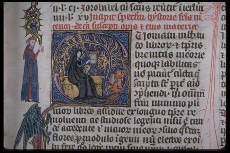 « L’ouvrage présente le Speculum maius, communément appelé la Grande Encyclopédie du Moyen Âge, écrit dans les années 1230-1260. Ce Grand Miroir du monde est une œuvre de commande et un produit d’atelier. Vincent de Beauvais, frère prêcheur de la première génération, en est le maître d’œuvre, sous l’impulsion probable d’un des premiers Maîtres universitaires de l’Ordre, Hugues de Saint-Cher. Cette « encyclopédie » en trois parties est une compilation « du meilleur de tous les livres ». Elle doit rendre accessible aux Frères Prêcheurs — les fratres communes — tout le savoir du monde, tel qu’il est constitué au milieu du XIIIe siècle, et étudié dans les studia établis obligatoirement dans tous les couvents dominicains. Le travail d’équipe qui aboutira en deux étapes (c. 1244 et c. 1259) à l’œuvre aujourd’hui connue, fut d’abord de lire et de faire des extraits, puis — ce fut la tâche même de Vincent de Beauvais — d’organiser la présentation de ces extraits pour que les connaissances ainsi accumulées soient facilement repérables : la matière des trois parties fut donc divisée en livres et en chapitres indexés par un titre descriptif du contenu, en signalant clairement l’identité des textes cités, car leur poids de vérité dépend de l’autorité accordée aux auteurs.
