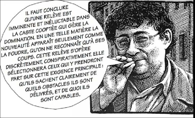 L’enjeu est simple, mais immense. Il ne s’agit de rien d’autre que de la réalité de la liberté. La paranoïa qui pour certains les caractérise, lui et sa démarche, n’est qu’un exemple de cet usage déplacé des mots. Elle n’est, le concernant, que la forme nécessaire d’une attention portée au maintien des conditions lui permettant d’analyser le monde.