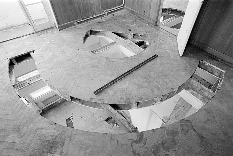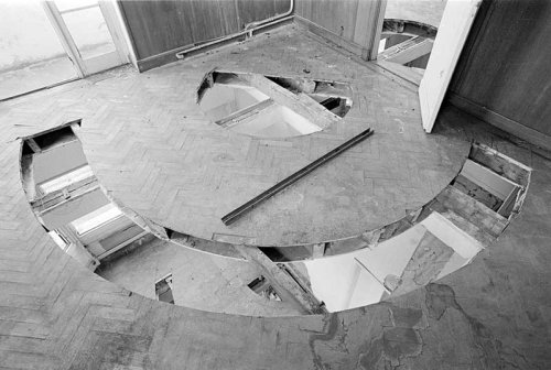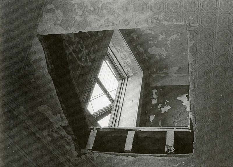 Les œuvres de Gordon Matta-Clark rendent l’habiter littéralement impraticable. Notre psychisme est comme renvoyé à son impossible envers et l’être associé à la fois à la raison et à ce sur quoi il est justement possible de faire fond se trouve radicalement dévitalisé et pulvérisé.