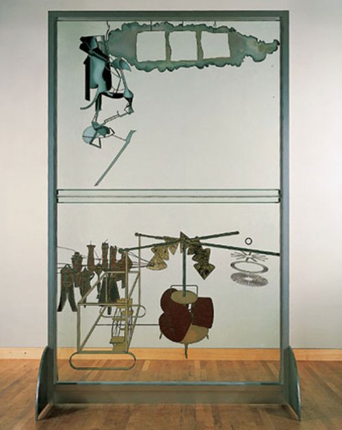 De sa critique de la peinture comme relevant de la catégorie des ready-made, toute toile étant produite au moyen des mêmes tubes de peinture fabriqués par l’industrie, à la réalisation d’une « toile » sans toile et sans peinture, Le grand Verre, de la fonction qu’il accorde au texte, sous forme de notes dans la réalisation d’une œuvre, au rôle des mots dans les œuvres elles-mêmes, que ce soit dans les titres ou comme élément constitutif de l’œuvre, Duchamp ne cesse de parcourir la faille qui se crée entre la puissance émotionnelle de l’œuvre et la réalité de cette émotion.