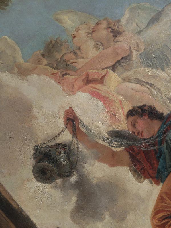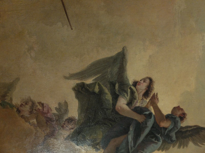 Pourtant, c’est moins voir qui importe que la manière dont on montre ce qui fait l’objet de la vision et le corps qu’il faut être disposé à se faire pour y parvenir. L’extase est un état du corps, mais cet état n’est possible que si l’on accepte de ne plus avoir peur de ses hallucinations. Ainsi, chacun de ces saints qui espèrent être physiquement aspirés par la trouée du ciel forment-ils un cohorte de modèle autorisant l’espoir d’accéder au ciel individuellement en ne repoussant plus les hallucinations. Ce sont elles qui mettent littéralement hors de soi et l’extase n’est rien d’autre que cette délocalisation du corps vécue dans l’ici de la chair.