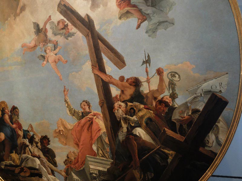 Dans la majorité de ses églises on voit des œuvres des XVIe et XVIIe siècles. À l’Académie on peut cependant accéder à une partie de la vérité du siècle qui précède, et qui lui peint les amours en gloire du fils et de la mère, des couronnements de l’une par l’autre, des jeux de regards éclairant des visages jeunes. À voir les tableaux de Veneziano par exemple, comment ne pas se dire que plutôt qu’une mère et un fils on voit deux amants magnifiques ?