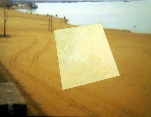 The new seria by Nelya Korzhova « Inland » is one of the key points of the exposure. It’s a minimalistic synthesis of photography and painting in one plane. The objective row is taken from everyday background, but reduced to primary bases : water and earth, light and shadow, up and down, line of horizon. There’s a man in the series, but just as a faceless silhouette, as a generalised « sign of a man », without whom the landscape would finelly turn into abstraction. Precisely the man figures, going to the spectator from the deep of space, indicates the depth of the plane. Conditional people exists in this continuum with the geometric bodies, whose complex is made by the picturesque layer atop the photographic layer. Thus objective and non-objective worlds combines into totality as if in « Next — nothing » series the photograhy and poetic text did. The suprematic matters finds the materiality. The plane and the depth begin co-exist. The dinamic to the series is imparted by the centarl motif of moving — the figures are moving, or drifting nomadically, without the aim. The idea of nomadic drifts is congenial to Nelya Korzhova and her curatorial practice : creating situations when a great number of spectators move from one artwork to another.