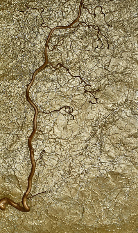 Enfin, « Natura » ! La Nature défunte ne peut plus être honorée qu’au travers d’icônes à fond d’or froissé comme le papier d’emballage d’un cadeau négligemment ouvert et malencontreusement cassé.