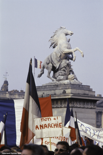 Plus le temps passe, plus les célébrations sont devenues importantes. En 2008, par exemple, on a compté 440 parutions avec la plupart du temps les mêmes illustrations. Rien de plus normal car, en dehors de ceux qui appartenaient à une agence (Magnum pour Bruno Barbey et Marc Riboud, Gamma pour Gilles Caron,) cette nouvelle génération de photographes qui a émergé a été, pour cette raison, très mal distribuée et diffusée. On peut donc regretter que les commémorations successives ne soient venues compléter l’editing de base et que ce cinquantenaire se soit concentré sur une sorte de déconstruction de certaines icônes pour en reconstruire d’autres. On sait que si la photographie, prise par Gilles Caron, de Cohn Bendit regardant le CRS - si vous êtes un tant soi peu photographe, vous verrez que les regards ne peuvent pas se croiser - ne fut pas la première à être publiée (il y en a eu trois autres), c’est que le vendeur de l’agence a certainement été plus prompt à la présenter aux magazines. Mais comme c’est celle qui contient le plus d’ironie et de gouaille, il est normal qu’elle ait émergé dès que l’on s’est rendu compte que c’était elle qui avait le plus de force. Pour la remplacer par quoi ? Une photographie « montée » qui certes, reflète bien les agissements de l’époque et qui, par analogie avec l’exposition Delacroix, qui se tient actuellement au Louvre, devient la Marianne.