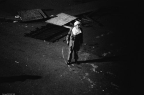 C’est durant cette nuit que je fus confronté, vraisemblablement à une "barbouze" armée d’un gros calibre qui démantelait une barricade élevée avec des panneaux électoraux à l’angle de la rue Saint-Jacques et du boulevard Saint-Germain. J’entends encore ce silence au cours duquel le déclenchement de l’appareil photo réglé au 1/15 seconde m’a semblé plus bruyant qu’un coup de cymbales. À moins de sept mètres de cet excité de la gâchette, il m’a semblé préférable de ne pas tenter un second déclenchement qui m’aurait peut-être évité de me retrouver dans le dilemme de Blow up !