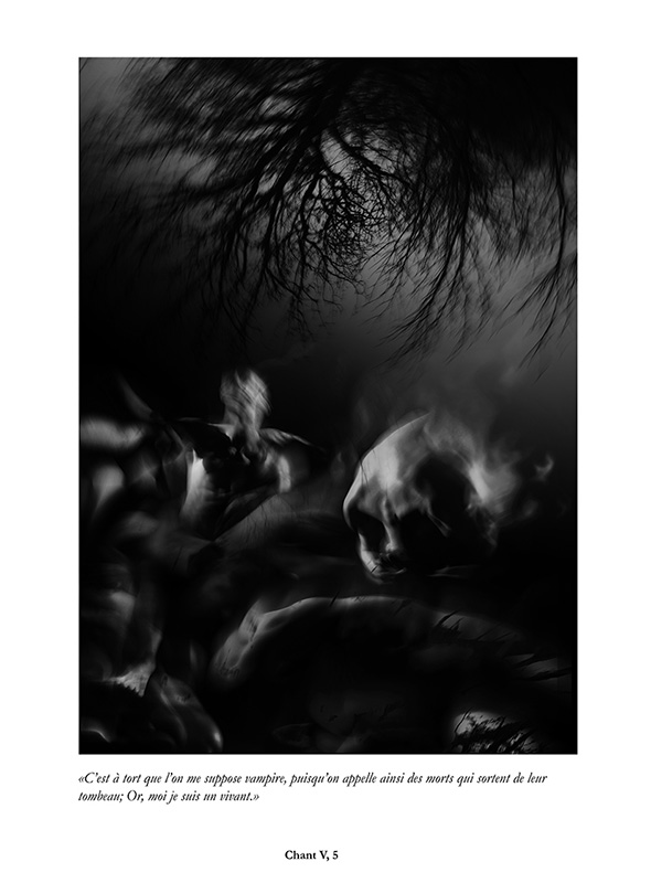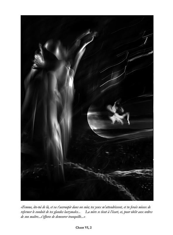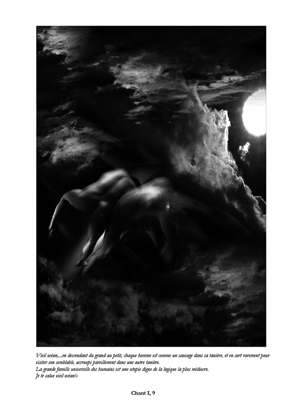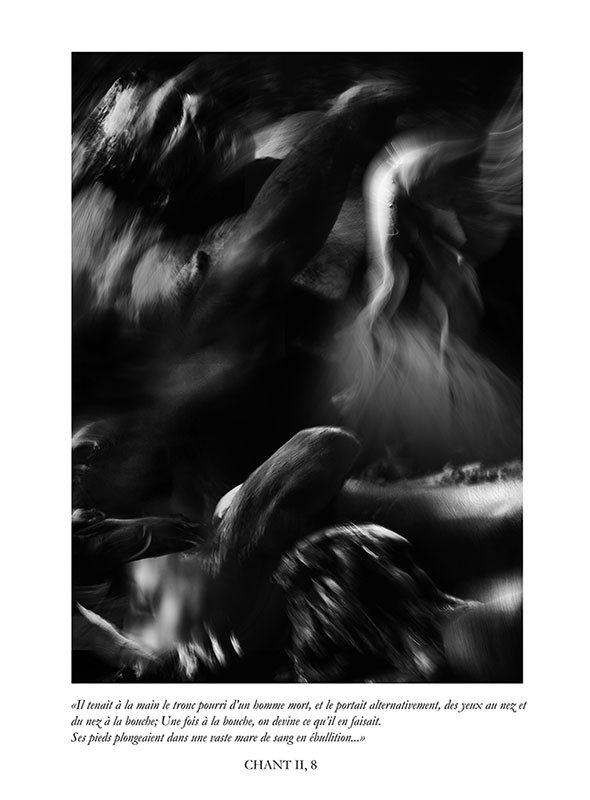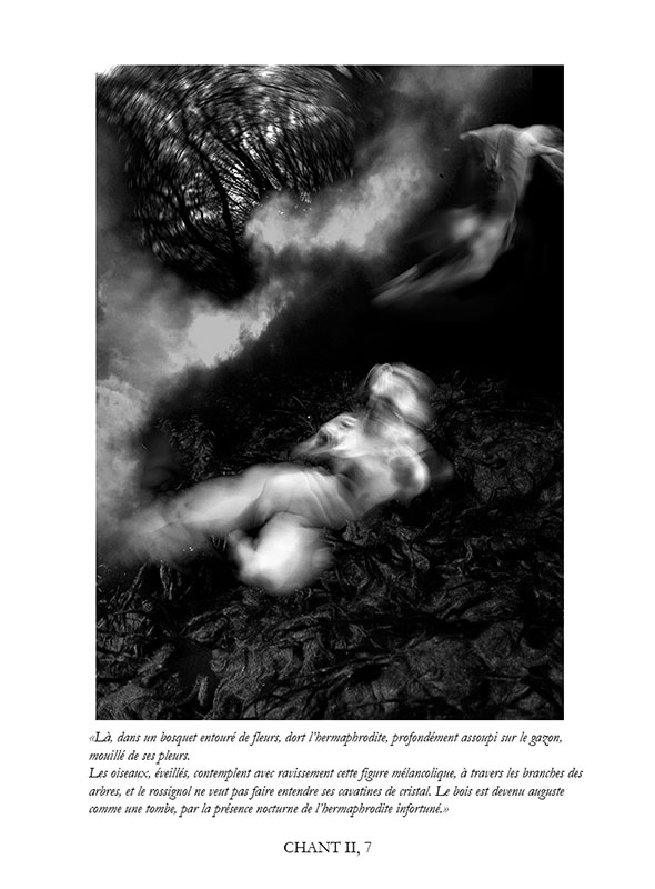 " Après avoir travaillé sur l’Enfer de Dante, un Enfer figé pour tous les pêcheurs en un éternel recommencement, j’avais envie de me confronter aux « Chants de Maldoror », un Enfer de tous les possibles, un Enfer vivant, notre monde.