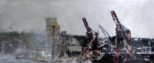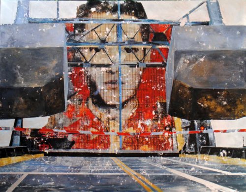 La transfiguration s’opère par l’hybridation du montage numérique, de la peinture et de la gravure le plus souvent sur des supports métalliques (aluminium ou acier inoxydable). Dans un premier temps, le montage numérique me permet d’assembler ou de modifier des images réalisées au cours de mes voyages qui m’offrent sans cesse l’occasion d’enrichir mon répertoire. Ensuite, la peinture avec ses couleurs, ses transparences ou ses épaisseurs prend le relai : je me réapproprie l’image transférée manuellement. En phase ultime, la gravure du métal produit la lumière selon un jeu de lignes choisies qui structurent mes espaces. En laissant ainsi passer par endroits la brillance de l’aluminium, l’image se modifie lorsqu’on se déplace devant l’œuvre, créant une interaction entre celle-ci et celui qui la regarde.